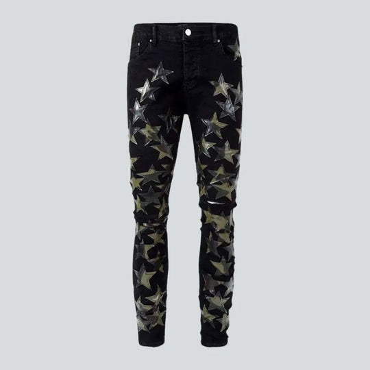 White stars embroidery men's jeans
