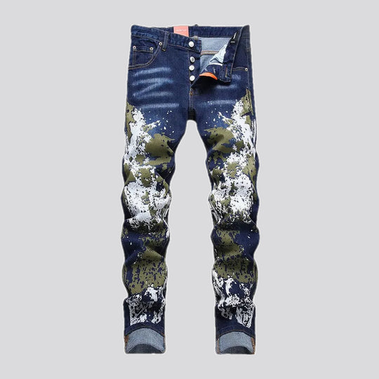 Painted graphic stretchable men's jeans