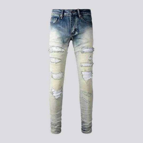 Black painted patch men's jeans